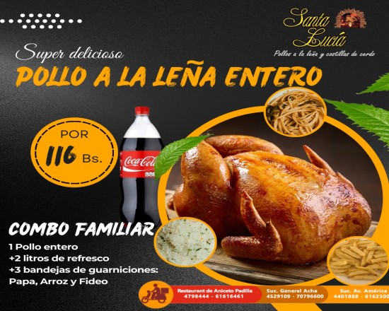 Desde entonces a la fecha, Pollos Santa Lucía se ha convertido en el Restaurante de Pollos a la Leña con un alto uno de los más concurridos en nuestra ciudad.